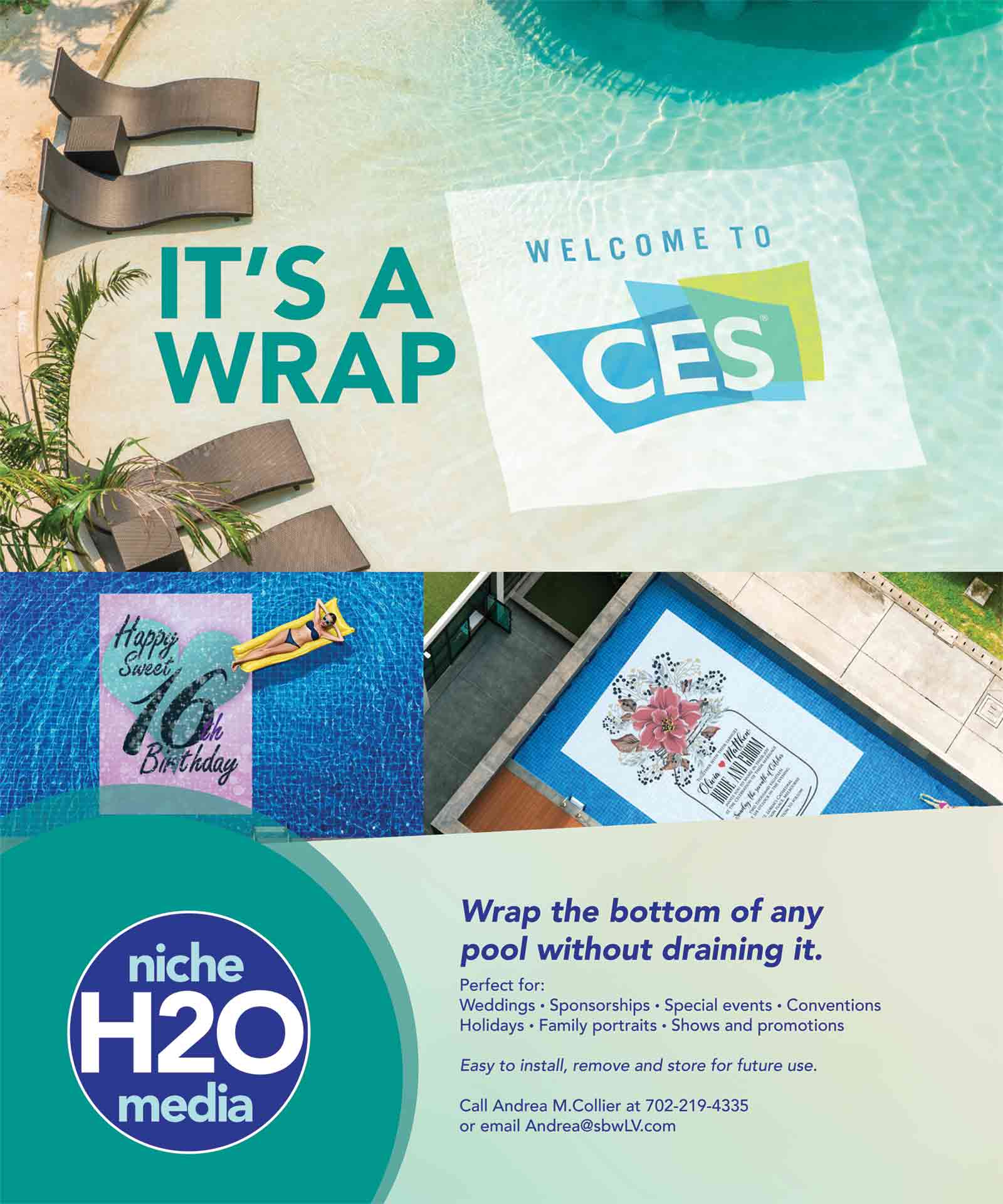 • Our H2O MEDIA material lays on pool bottoms without adhesives and stays firmly in place until removed.
